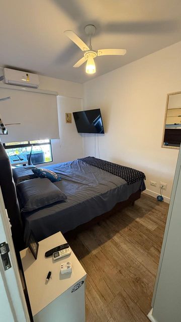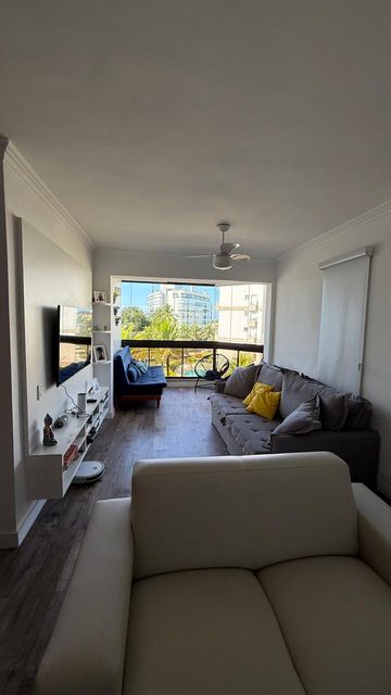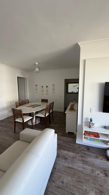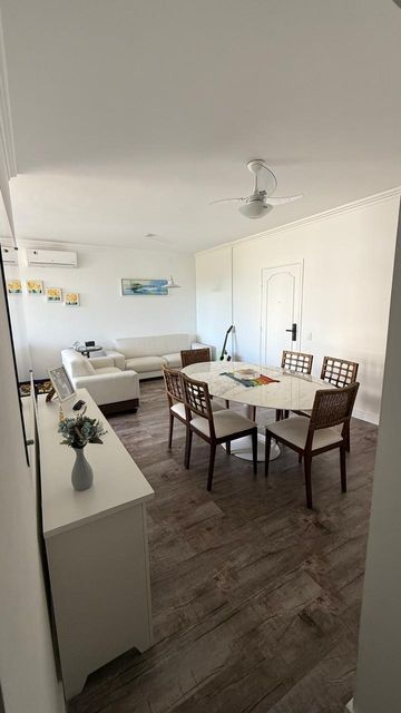 Apartamento para locação anual, com 101 m², localizado a apenas 150 metros da praia e do shopping, com vista para o mar. O imóvel possui 03 dormitórios, sendo 01 suíte, totalizando 02 banheiros. A suíte conta com cama queen, um segundo quarto com cama queen e um terceiro dormitório com duas camas de solteiro. Apartamento reformado, com piso vinílico, mobiliado, equipado com ar-condicionado e ventilador de teto em todos os ambientes, além de dois sofás-cama e lavanderia.