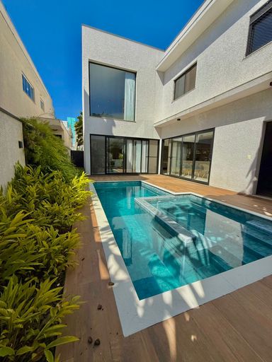 Casa de alto padrão à venda com 280 m² de área construída em terreno de 280 m², localizada em condomínio com completa infraestrutura de lazer e entretenimento. O imóvel possui 03 suítes, sendo uma master com closet, duas duchas e varanda, além de esquadrias automatizadas nas suítes. A área social conta com sala de estar/TV, sala de jantar, cozinha, lavabo e iluminação completa em todos os ambientes.